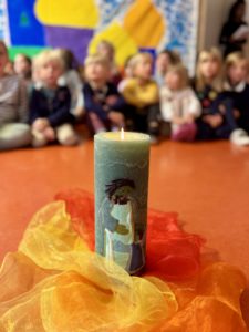 Die berühmte Bibelszene mit Jesus und den Kindern kann sinnbildlich für die pädagogische Arbeit des Kinderhauses St. Josef stehen, und sie stand auch im Mittelpunkt der traditionellen Segnungsfeier im Oktober 2025 für alle Kinder, die neu zu uns gekommen sind. Alljährlich begrüßen wir im Rahmen einer kleinen Feststunde unsere neuen Besucher in Krippe und Kindergarten. Vorschulkinder spielten für sie das symbolträchtige Geschehen aus der Bibel nach. In ihrer kleinen Theaterdarbietung litten sie unter der Unkenntnis der Erwachsenen, die nichts von Jesus‘ Liebe zu den Kindern wussten – und konnten sich am Schluss umso mehr erfreuen an seiner Liebe, konnten mit ihm tanzen, lachen, über Gott sprechen.